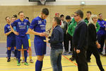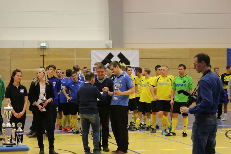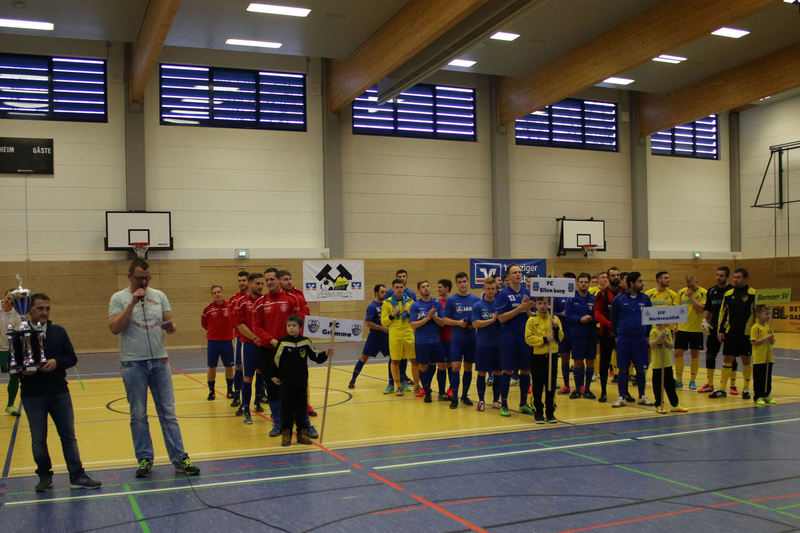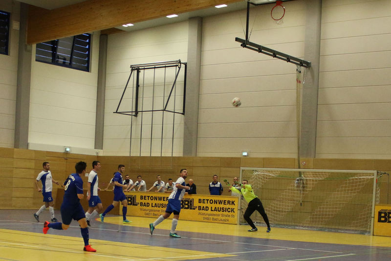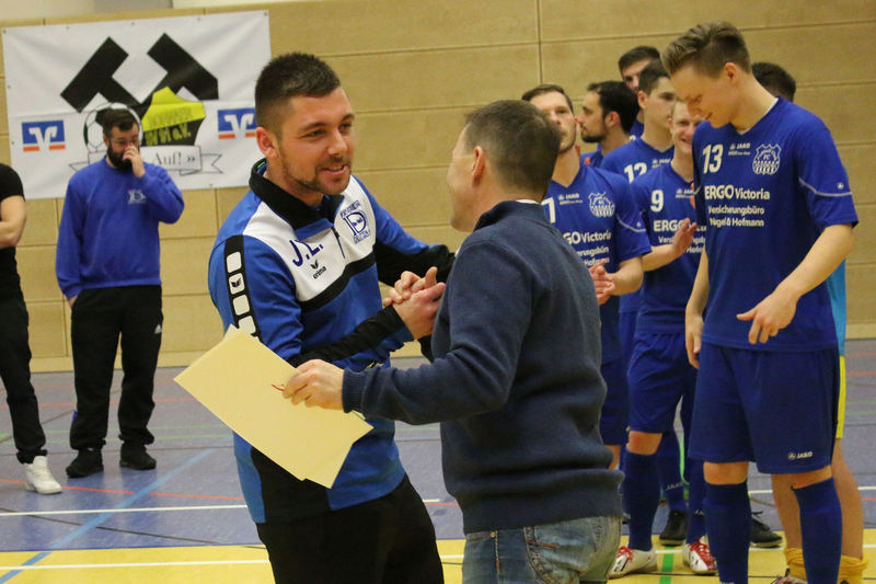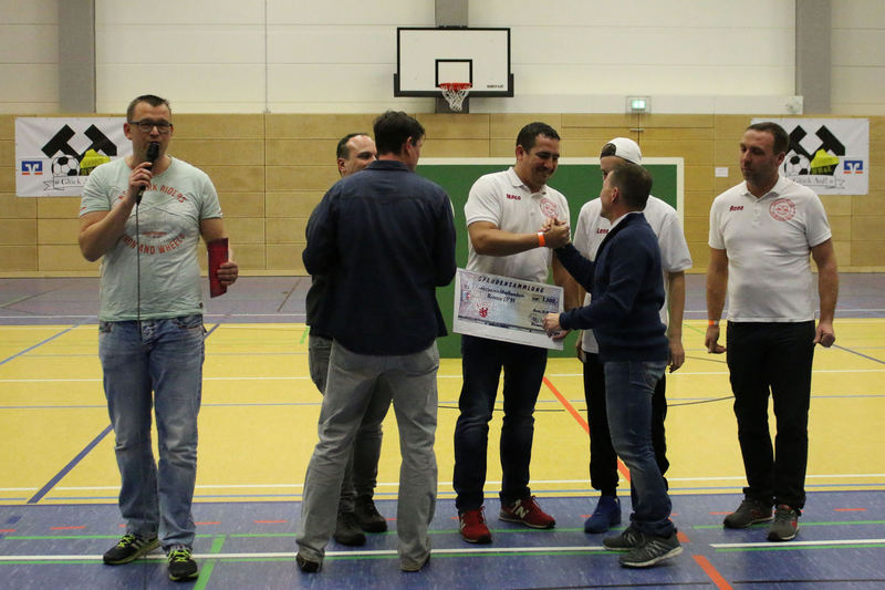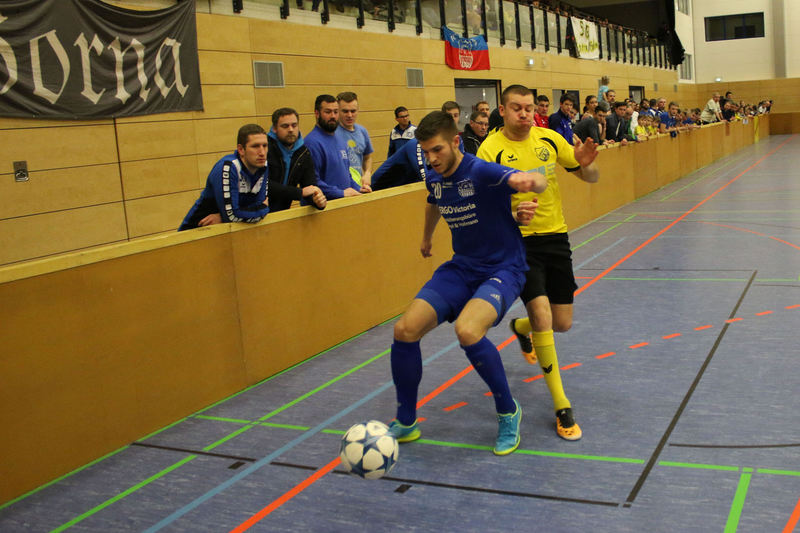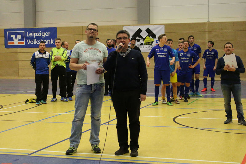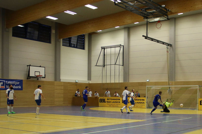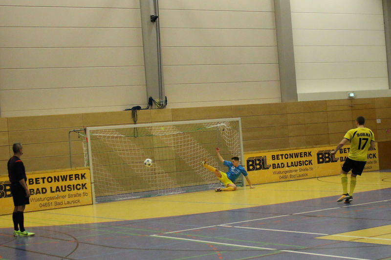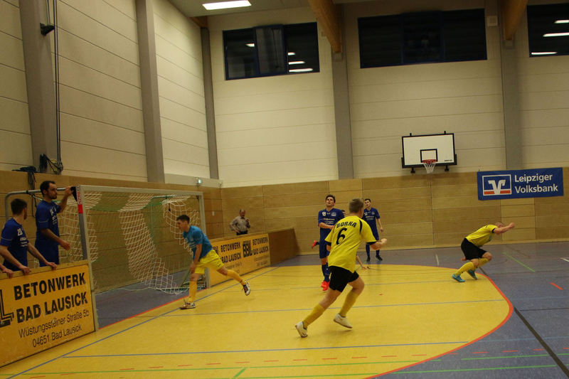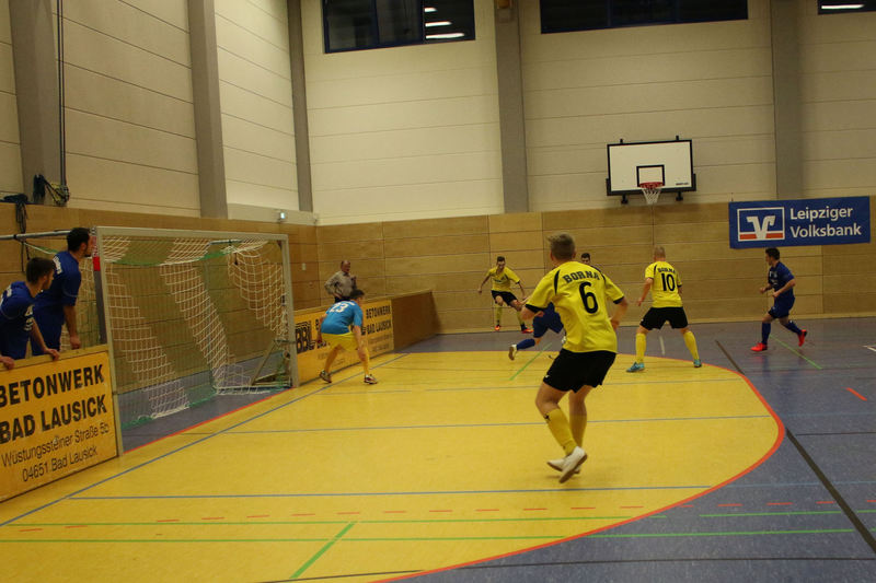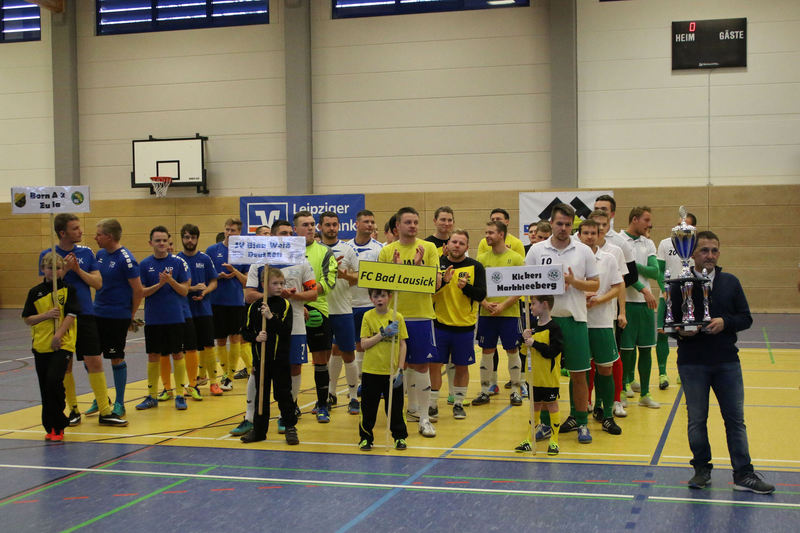 Landesliga-Spitzenreiter FC Eilenburg löst den FC Grimma als Titelträger des Glück-Auf-Turniers ab. In einem spannenden Finale in der fünften Auflage des Turniers bezwang der Landesligist den Gastgeber Bornaer SV mit 5:3 nach Neunmeterschießen. In der mit 340 Zuschauern nicht ganz ausverkauften Glück-Auf-Sporthalle bei einem der größten Sportevents der Region musste sich Titelverteidiger FC Grimma im Halbfinale dem späteren Turniersieger geschlagen geben. In Gruppe A gewann Eilenburg gleich das erste Turnierspiel gegen Borna knapp mit 3:2. Dabei konnte der BSV durch Nico Winkler den Gastgeber in Führung bringen. Doch der FCE brachte seine ganze Routine ein und drehte das Spiel. Gegen Deutzen bissen sich die Eilenburger etwas die Zähne aus, konnten aber ein 1:1 über die Zeit retten. Durch das klare 4:1 gegen Bad Lausick marschierten sie daher ungeschlagen und als Gruppenerster aus der Vorrunde. Der BSV verdaute die Auftaktniederlage aber mehr als gut. Durch die Siege gegen Deutzen (1:0) und Bad Lausick (3:2) zogen die Bornaer ebenfalls ins Halbfinale ein. Für die Kurstädter, im letzten Jahr noch Dritter, gab es diesmal nicht viel zu holen. Nach nur einem Punkt (1:1 gegen Deutzen) blieb in der Gruppe lediglich der letzte Platz. Bad Lausick musste sogar den Blau-Weißen aus Deutzen, die zwei Zähler auf der Habenseite verbuchen konnten, den dritten Gruppenrang überlassen. In Gruppe B bestimmte zunächst Kickers Markkleeberg das Geschehen. Nach den zwei Siegen gegen Grimma (2:1) und der SG Borna/Eula (2:1) reichte im letzten Gruppenspiel ein 2:2 gegen Markranstädt für den ersten Halbfinalplatz. Grimma folgte auf dem zweiten Platz, blieb nach der Auftaktpleite ruhig und konnte nach den beiden Siegen gegen Borna/Eula (2:0) und Markranstädt (2:1)ebenfalls ins Halbfinale einziehen. Die SG Borna/Eula startete mit einem 2:1-Erfolg über Oberligist Markranstädt ins Turnier. Bei den beiden Niederlagen gegen Kickers und Grimma hielt sie gut dagegen, ihr couragiertes Auftreten wurde aber nicht belohnt. Immerhin blieb der dritte Gruppenplatz. Der letztjährige Finalist Markranstädt enttäuschte und musste nach nur einem Punktgewinn in der Vorrunde die Segel streichen. Im ersten Halbfinale traf Eilenburg im Landesliga-Duell auf Grimma. Christoph Bartlog brachte den FCE früh in Führung. Nachdem Adam Fiedler das 2:0 nachlegte, schien alles gelaufen. Christoph Jackisch brachte aber den FC wieder ins Spiel. Als Fiedler zum 3:1 traf, konterte Dennis Sven Radig mit dem 3:2. In der letzten Minute wogte das Geschehen hin und her, doch Eilenburg brachte die knappe Führung über die Zeit. Im zweiten Halbfinale konnte Borna gegen Markkleeberg durch Nico Winkler und Jens Wagner schnell mit 2:0 in Führung gehen. Tobias Haufe verkürzte zwar, doch mit Winklers zweitem Treffer zum 3:1 war Bornas Finaleinzug perfekt. Im kleinen Finale brachte Christoph Jackisch Grimma in Führung. Tom Unholzer konnte aber egalisieren, und so musste die Entscheidung vom Punkt fallen. Hier hatte Grimma die besseren Nerven. Als Tobias Haufe für die Kickers verschoss, machte Jackisch für den FC den dritten Platz perfekt. In einem spannungsgeladenen Finale sah alles nach einem Spaziergang für Eilenburg aus, denn Fabian Döbelt und Adam Fiedler brachten den Landesligisten mit 2:0 in Führung. Borna ergab sich aber nicht und konnte in Person von Rodger Baetge verkürzen – 2:1. Fast mit der Schlusssirene setzte sich Johannes Heisig gut auf der rechten Seite durch, passte zu Lars Heine, und der traf zum vielumjubelten 2:2-Ausgleich. Im Entscheidungsschießen trafen zunächst Toni Majetschak und Jens Wagner für beide Mannschaften. Bartlog brachte den FCE dann mit 2:1 in Front. Nachdem Baetge an Thomas scheiterte, machte Fiedler den Finalsieg der Eilenburger perfekt. Die Eilenburger stellten mit Fabian Döbelt auch den besten Torschützen im Turnier. Als bester Spieler wurde Majd Al Moussa von der SG Borna/Eula gewählt. Einstimmig war auch die Entscheidung für Dennis Friedrich als besten Torwart. Überrascht wurde der Veranstalter in der Turnierpause von Vertretern des RB-Fanclubs Bornaer Bullen. Die initiierten eine interne Spendenaktion für den Bornaer Sportverein, der nach dem Einbruch im letzten Jahr einen enormen Schaden verkraften musste. Marco Müller und Rene Zegula übergaben an den BSV-Vorstand einen Scheck über 1300 Euro – eine klasse Aktion. BSV-Präsident Ingo Dießner und auch Andreas Woda vom Hauptsponsor Leipziger Volksbank zeigten sich zufrieden mit dem Turnier. Beide waren sich einig, eine Neuauflage 2018 in Angriff zu nehmen. „Nach fünf erfolgreichen Jahren Glück-Auf-Turnier darf man schon von einer Tradition sprechen“, betonte Woda.