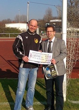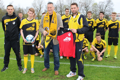 Vor Beginn des heutigen Heimspiels unserer U23 gegen Germania Mölbis übergab Herr Andreas Woda, Vorstand der VR Bank Leipziger Land, zwei neue Trikotsätze an die Spieler D. Dietze und A. Kluge sowie an BSV Vorstand S. Nedwidek.