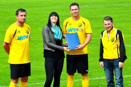symbolischem Anstoß des Nachwuchsturniers durch unsere Unterstützer Frau Dr. Diesener, MIBRAG und Herrn Gerhardt, MUEG
