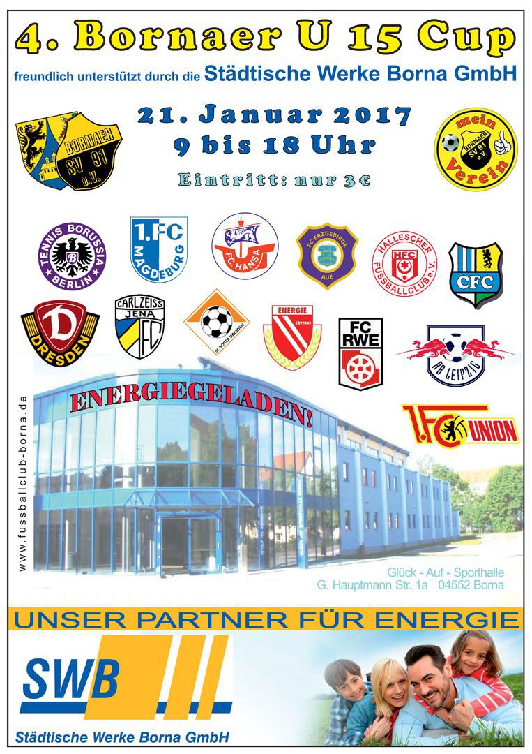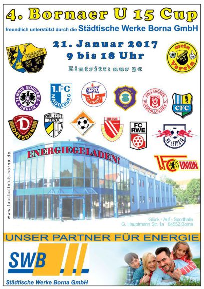Beim top - besetzten 4. U15 Cup um den Pokal der SWB, ging RB Leipzig als Sieger hervor. Im Finale bezwang die vom Ex - Bornaer Sebastian Kegel trainierte Mannschaft den Halleschen FC mit 3:2 und darf sich zudem „inoffizieller NOFV Hallenmeister“ nennen. ...